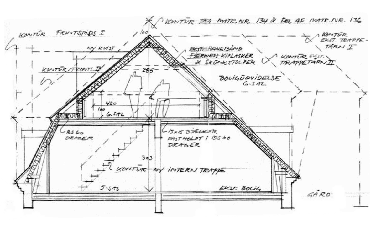 Ved etablering af nye lejligheder i tagetagen forlænges hovedtrapperne for adgang til boligerne.